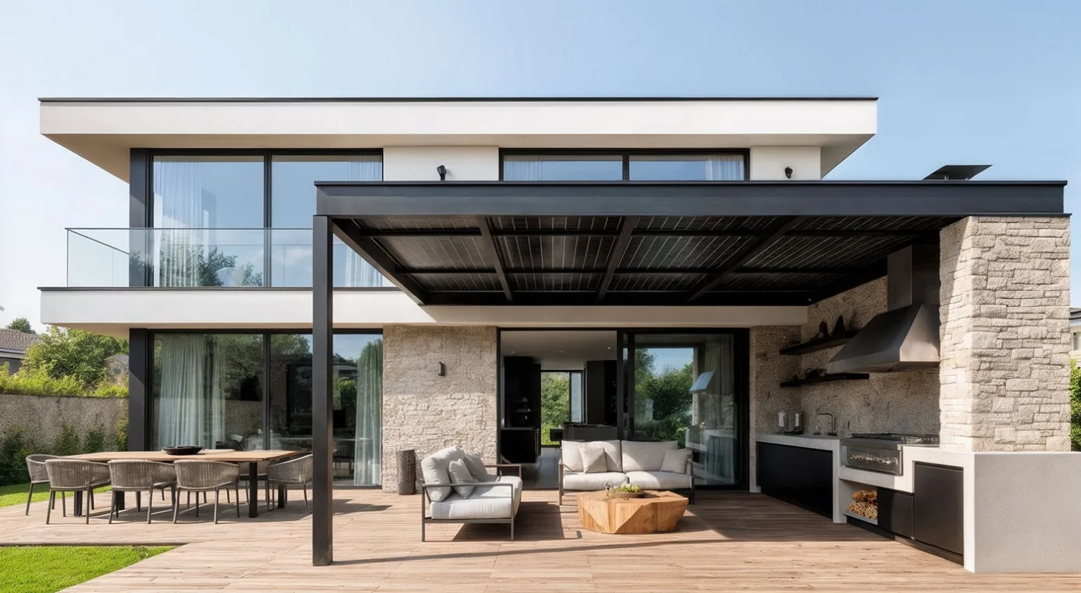 Installazione di una pergola bioclimatica addossata a parete con chiusure laterali in vetrate VEPA, pensata per valorizzare gli spazi esterni e garantire comfort in ogni stagione. Un intervento curato nei dettagli, realizzato in 5 giornate operative e inserito in un percorso completo di progettazione e ottimizzazione degli impianti.