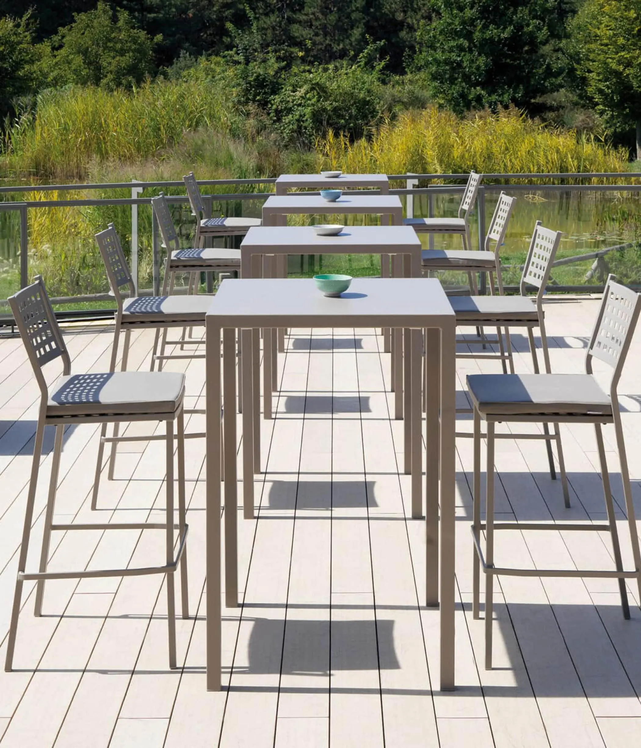 Linee moderne facili da utilizzare in qualsiasi situazione. L’ arredo da esterno contract risponde ai requisiti di efficienza, durata e praticità.