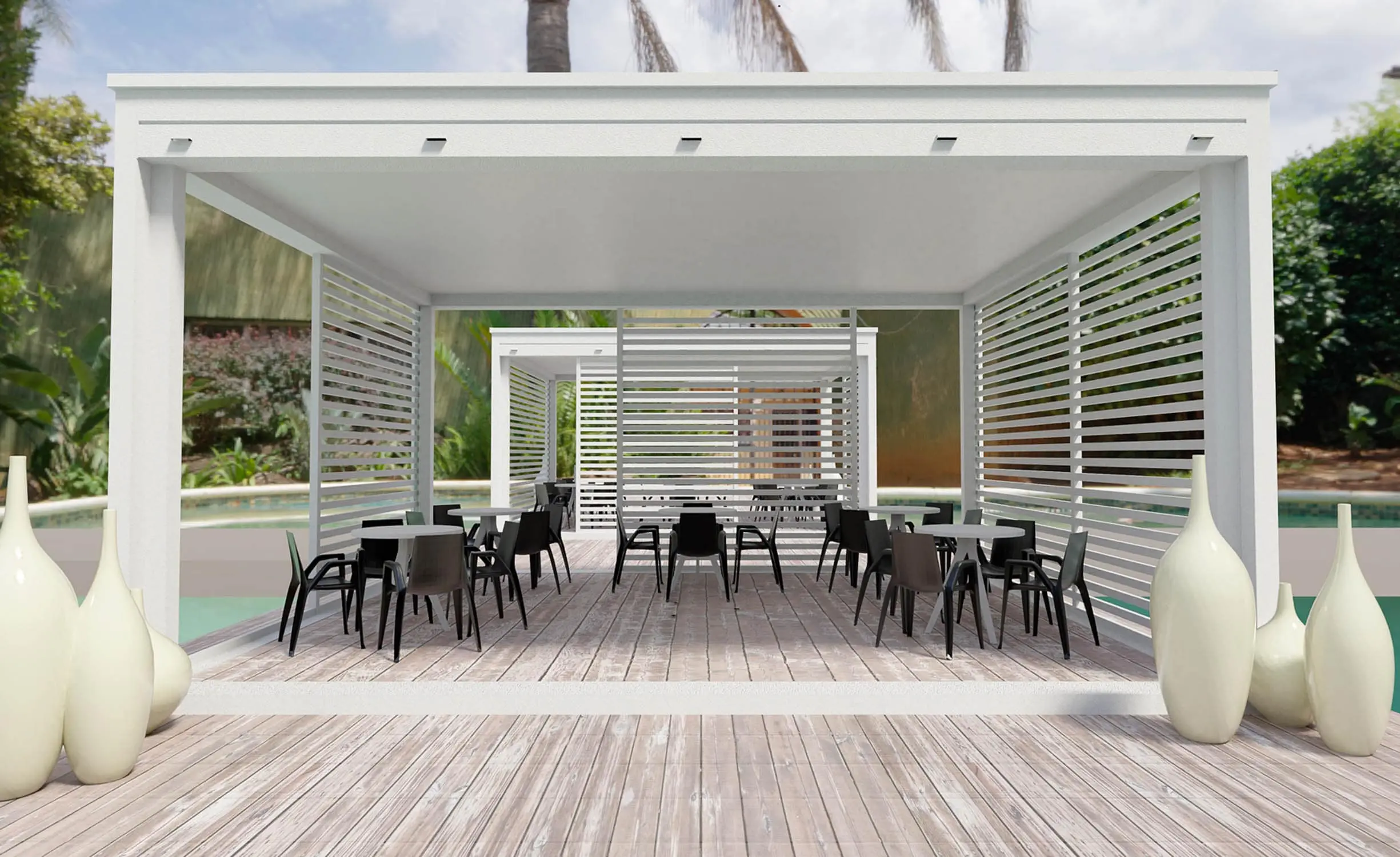 Un gazebo in ferro con tetto piatto è una struttura portante in ferro zincato e verniciato a polvere.