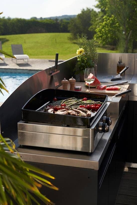 Con una vasta gamma di accessori opzionali, come credenze aggiuntive, ruote, scaffali e kit accessori, puoi adattare la Cucina Angolare 5 Elementi Top Inox alle tue esigenze per una cucina da esterno completa e performante!