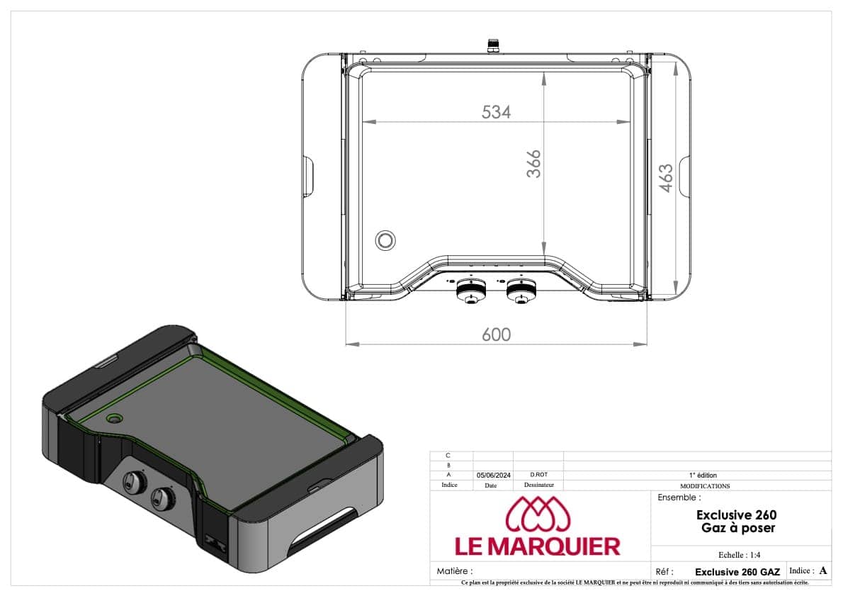Le 2 zone di cottura, regolabili da 50 a 300°C, consentono una gestione indipendente per una cottura ottimale, mentre i 2 pulsanti di comando ergonomici e antiscivolo offrono un controllo intuitivo. Il robusto design, realizzato in acciaio elettrozincato e inox 304 opaco, include un coperchio integrato, 4 piedi regolabili in altezza e un raccoglitore in acciaio inox rettangolare nascosto in facciata (capacità 1,2 L). Con dimensioni di L78 x P49 x H16 e un peso di 29 kg, il prodotto rispetta le normative CE, IPX4 e vanta il Label OFG (Certificazione Origine Francia Garantita).
