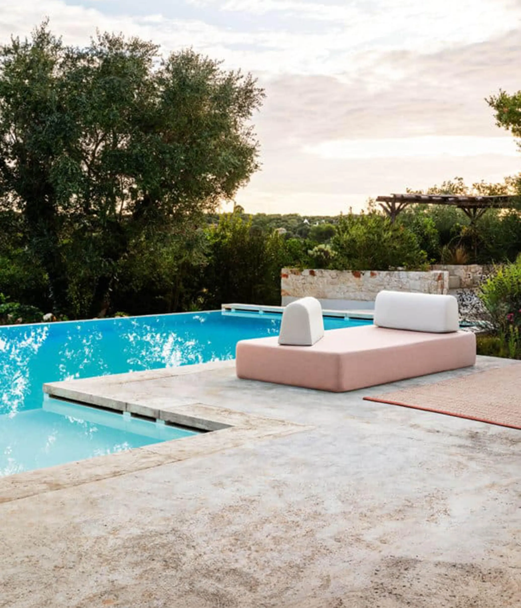 Anche l’imbottitura del Mare by Myyour è studiata appositamente per lunghe esposizioni all’aperto e drena l’acqua senza trattenerla al proprio interno, in modo da garantire una rapida asciugatura. La seduta resta utilizzabile poco dopo un acquazzone.