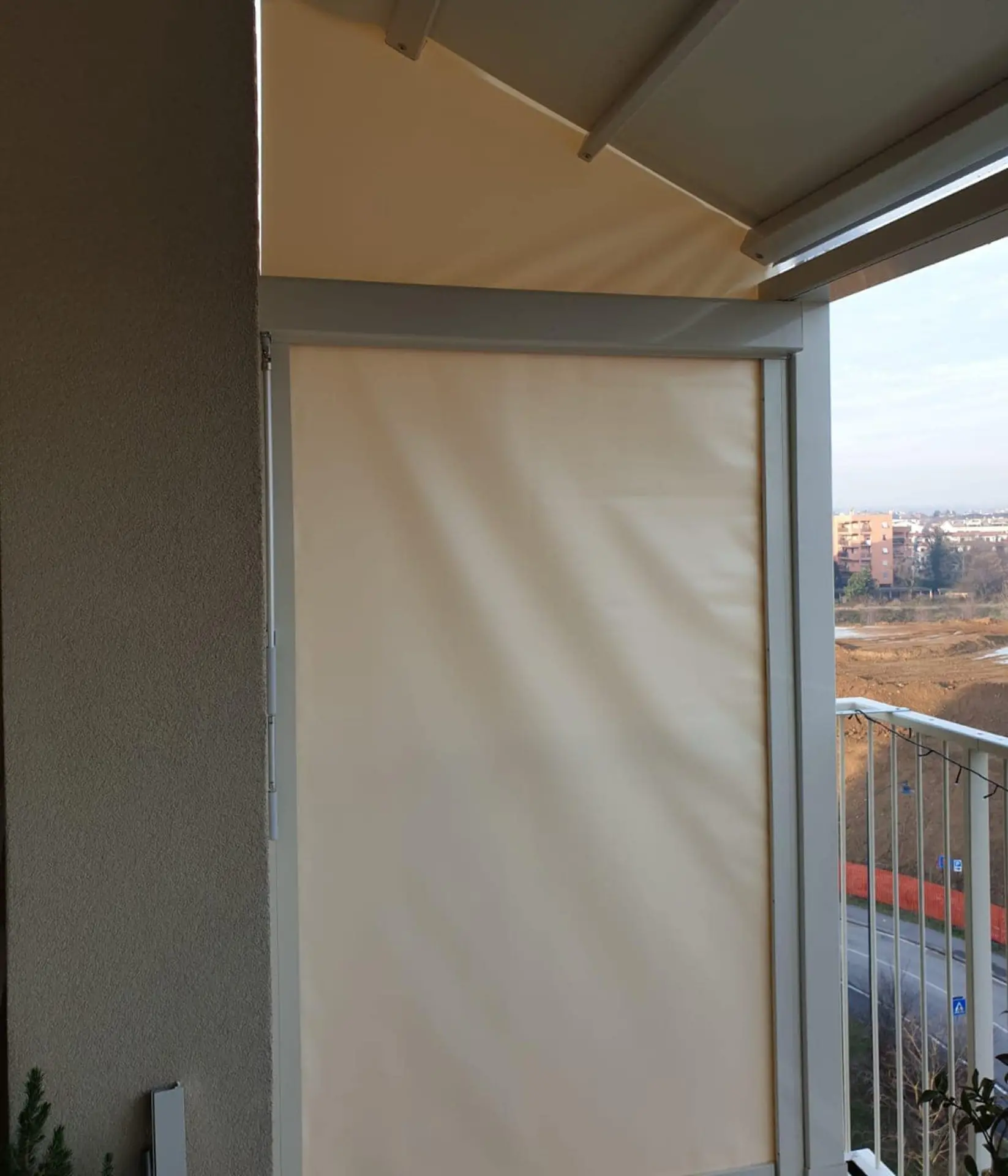 Le chiusure laterali sono dotate di guide antivento e di sistema di scorrimento del telo vincolato nelle guide tramite cerniera a zip.