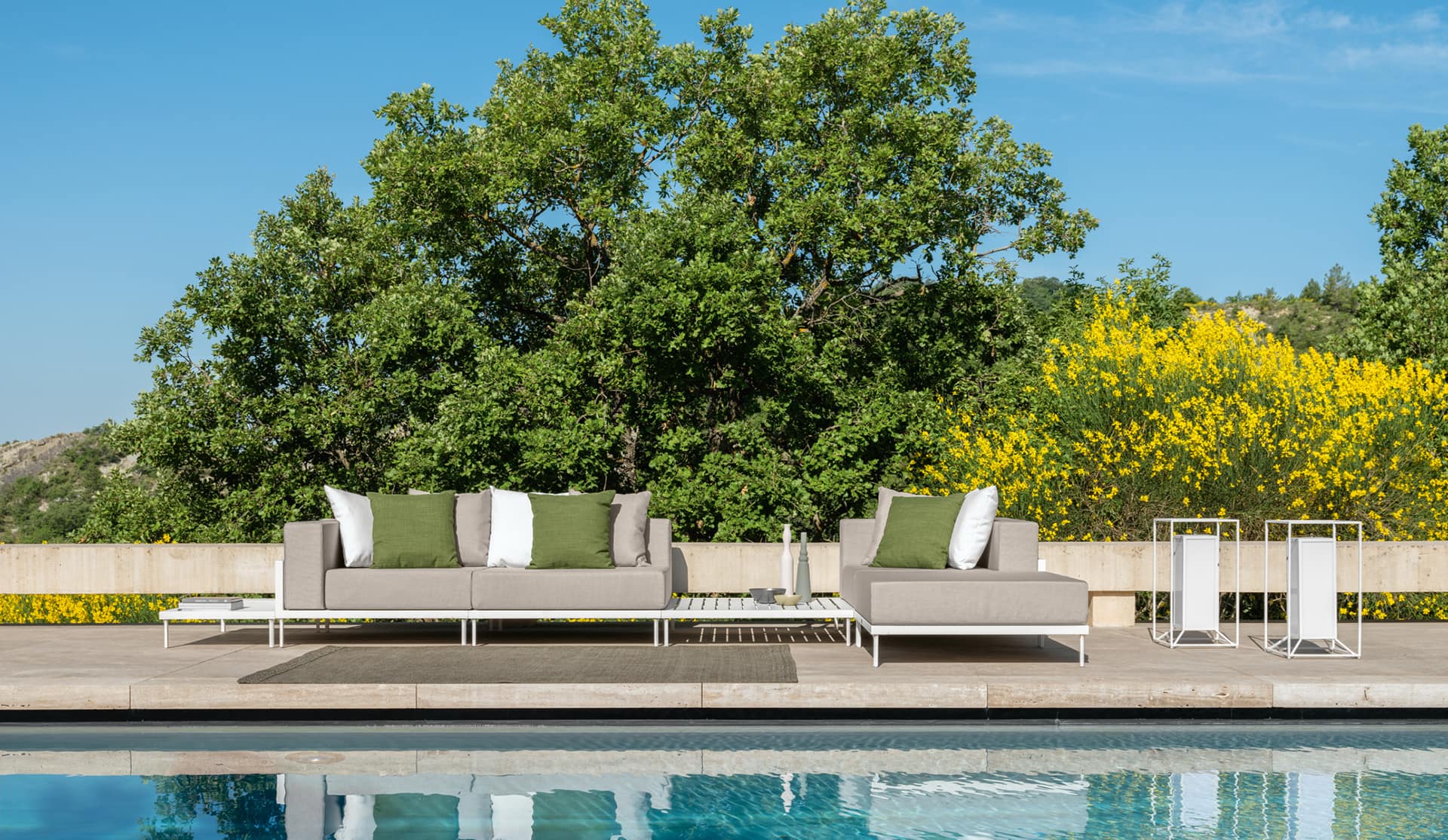 Scegli il Talenti Cleo divano modulare estensione centrale per ampliare la tua zona living outdoor con massima flessibilità, design geometrico Marco Acerbis e comfort superiore.