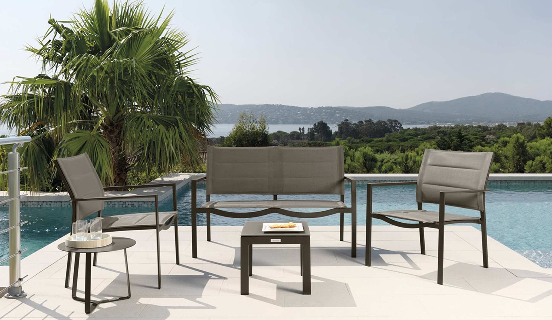 Le Poltrone Living seguono lo stesso design essenziale della collezione Touch, fondendosi armoniosamente con l’outdoor grazie alla loro struttura in alluminio leggero ma resistente e alla seduta in textilene, che garantisce comodità duratura. La scelta dei materiali assicura grande resistenza agli agenti atmosferici.