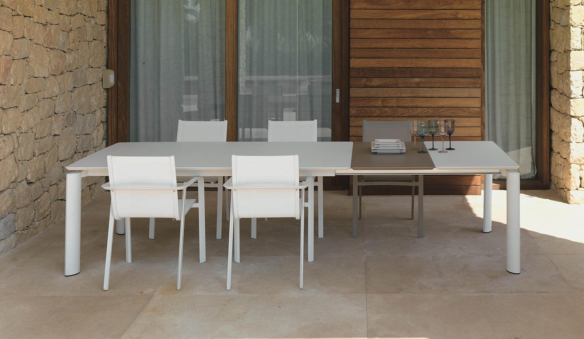 Scegli il Tavolo da pranzo estendibile Talenti Milo 200-260×100 per una zona pranzo outdoor che unisce flessibilità, eleganza sartoriale e design contemporaneo italiano.
